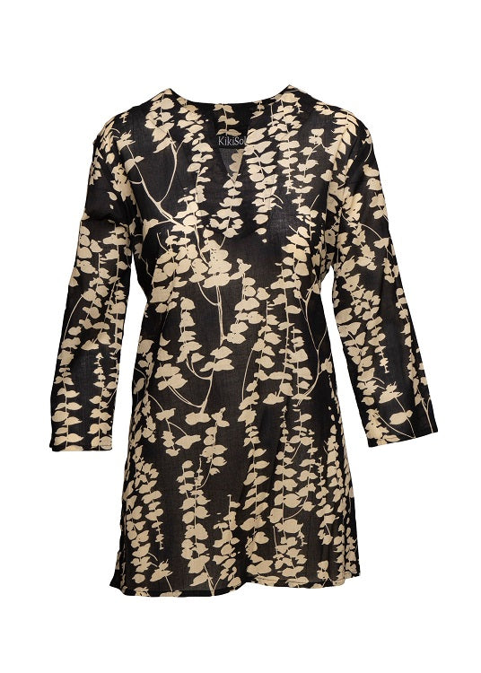 Black and Cream Cascade KikiSol Tunic in 100% Cotton